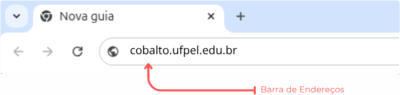 Para acessar o Cobalto, digite na barra de endereços do seu navegador o endereço a seguir ou simplesmente clique no link: https://cobalto.ufpel.edu.br